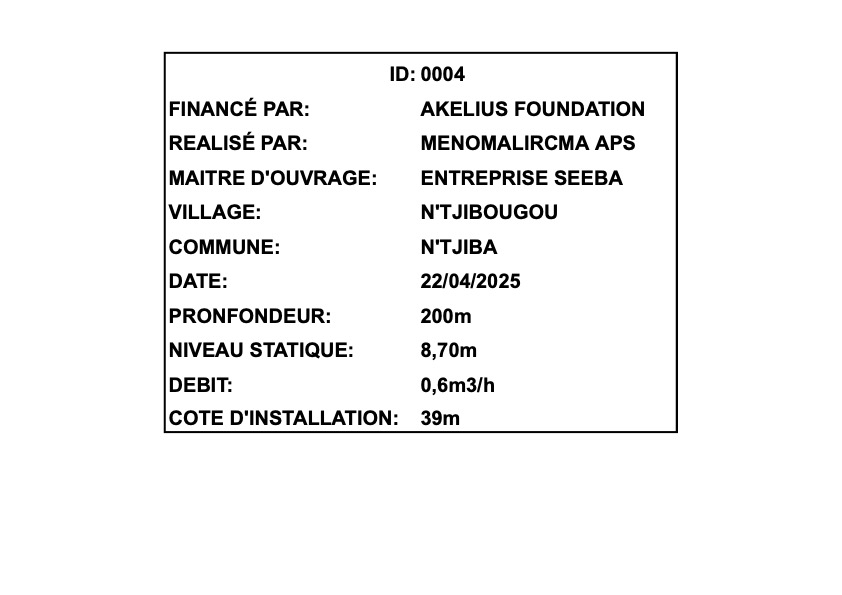 C'est pourquoi nous allons construire, à son nom, un puits d'Eau potable dans une des zones dans le monde où l'Eau n'est pas encore une resource accéssible à tous: au Mali.